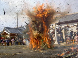 燃え盛る左義長