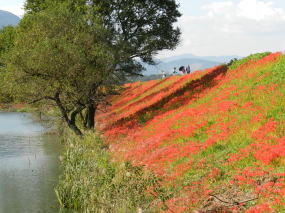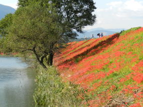 約3kmにわたり10万本のヒガンバナが自生しています。